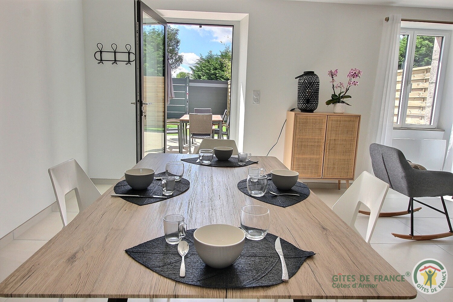 Espace parking privatif devant longère au bord des portillons. Toujours sur la propriété un 3ème gîte indépendant : 22G351054 – L’Olivier – 6 pers.)